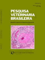 Descreve-se um surto de intoxicação por Pterodon emarginatus em bovinos no Estado de Goiás. De um lote de 84 bovinos que comeram avidamente folhas e os frutos da planta após a queda acidental de uma árvore, todos os animais adoeceram e sete morreram. Os sinais clínicos observados foram eriçamento dos pelos, retração do flanco, apatia profunda, prostração, tremores musculares, ressecamento do focinho, tenesmo, incoordenação, relutância em movimentar-se e decúbito esternal prolongado. As atividades séricas de AST, ALT e GGT e os teores de bilirrubina estavam acentuadamente elevados. As principais alterações macroscópicas consistiam de hepatomegalia e áreas multifocais de necrose no fígado, além de hemorragias no coração, pleura parietal, mesentério, omento, serosa do rúmen, baço, pulmão, subcutâneo e musculatura esquelética intercostal e torácica. Microscopicamente, observou-se degeneração e necrose hepatocelular massiva moderada a acentuada, hiperplasia biliar multifocal moderada e bilestase multifocal leve. Adicionalmente, notou-se degeneração vacuolar multifocal moderada nos túbulos contorcidos dos rins.