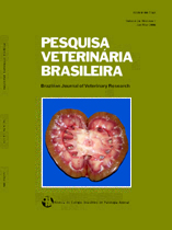 Descrevem-se os quadros clínico-patológicos e laboratoriais de equinos inoculados experimentalmente com a peçonha de Caudisona durissa terrificus (Crotalus durissus terrificus na antiga nomenclatura), com a finalidade de fornecer subsídios que favoreçam a compreensão desse tipo de acidente ofídico em equinos. O veneno liofilizado foi diluído em 1ml de solução salina a 0,9% e inoculado por via subcutânea em cinco equinos, nas doses de 0,12mg/kg (um animal), 0,066mg/kg (dois animais) e 0,03mg/kg (dois animais). O veneno causou a morte do equino que recebeu a dose de 0,12mg/kg e de um dos dois que receberam a dose de 0,066mg/kg, com evolução de 27h27min e 52h29min, respectivamente. O segundo animal que recebeu a dose de 0,066mg/kg também adoeceu, mas recuperou-se após 12 dias da inoculação. A dose de 0,03mg/kg determinou quadros não fatais do envenenamento, com período de evolução que variou entre 6 e 10 dias. O quadro clínico caracterizou-se por considerável aumento de volume no local de inoculação (escápula) que se estendeu por todo o membro, apatia e cabeça baixa, alterações locomotoras evidenciadas pelo arrastar das pinças no solo, decúbito e dificuldade para levantar, redução dos reflexos auricular, palatal, do lábio superior e de ameaça, e aumento das frequências cardíaca e respiratória. Os exames laboratoriais revelaram leucocitose por neutrofilia e linfocitose em apenas dois animais. Houve aumento das enzimas creatina quinase (CK), dehidrogenase láctica (DHL) e da ureia, e também redução nos níveis séricos de cálcio, fósforo e magnésio. O tempo de tromboplastina parcial ativada (TTPA) aumentou nos equinos que morreram. Os achados de necropsia foram edema do tecido subcutâneo em todo o membro em que foi aplicado o veneno, sufusões no epicárdio dos ventrículos cardíacos esquerdo e direito, e bexiga com áreas hemorrágicas em grande parte da mucosa. Ao exame histopatológico observaram-se fígado com moderada vacuolização difusa, afetando mais a zona intermediária do lóbulo hepático, leve dilatação dos sinusoides hepáticos em algumas áreas e rim com leve dilatação dos túbulos uriníferos, principalmente no córtex.