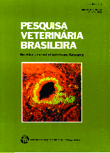 O Vírus Respiratório Sincicial Bovino (BRSV) tem sido raramente identificado como agente etiológico de doença respiratória em bovinos no Brasil. Isso contrasta com freqüentes relatos clínicos e histopatológicos sugestivos de enfermidade associada ao BRSV. Com o objetivo de investigar o possível envolvimento do BRSV em casos de pneumonia em bovinos jovens, realizou-se uma pesquisa retrospectiva para antígenos do BRSV em cortes histológicos de materiais submetidos a quatro serviços de diagnóstico nos Estados do Rio Grande do Sul e Minas Gerais. Dez entre 41 casos examinados (24,4%) foram positivos para antígenos do BRSV por imunohistoquímica (lPX). Oito desses casos (19,5%) também foram positivos por imunofluorescência (lFA) e 31 casos (75,6%) foram negativos em ambos os testes. Nos pulmões, antígenos virais foram detectados predominantemente nas células epiteliais dos bronquíolos e menos freqüentemente nos alveólos. Em um caso, antígenos virais foram detectados exclusivamente no epitélio alveolar. A presença de células positivas restringiu-se ao epitélio dessas vias aéreas. Em dois casos, antígenos virais foram detectados em células descamativas e em restos celulares no exsudato das vias aéreas. Os casos positivos para antígenos do BRSV eram oriundos principalmente de animais jovens (2 a 12 meses de idade) de rebanhos leiteiros. As principais alterações histológicas observadas foram pneumonia bronco-intersticial caracterizada por espessamento dos septos alveolares adjacentes às vias aéreas, infiltrados de células mononucleares e presença de células gigantes multinucleadas nos alveólos. Os resultados obtidos demonstram a utilidade dos métodos de detecção de antígenos em cortes histológicos para o diagnóstico da infecção pelo BRSV. Além disso, esses resultados confirmam evidências anteriores sobre a importância do BRSV como patógeno respiratório no sudeste e sul do Brasil.