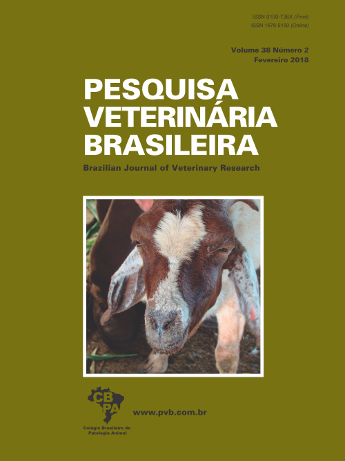 Objetivou-se com este estudo determinar os aspectos epidemiológicos da infecção pelo Vírus da Língua Azul (VLA) em bovinos leiteiros na microrregião de Garanhuns, Estado de Pernambuco, Brasil. Foram coletadas 384 amostras de soro de bovinos fêmeas em idade reprodutiva, procedentes de 20 propriedades dos 19 municípios que compõem a região. As amostras foram testadas com a prova de imunodifusão em gel de agarose (IDGA) para pesquisa de anticorpos anti-VLA. Observou-se ocorrência de 71,3% (274/384; IC 95% - 66,5% - 75,7%) de animais positivos. Em 100% das propriedades houve ao menos um animal soropositivo. Os fatores de risco identificados foram: presença de áreas alagadas (OR=11,8; p=0,001), não realizar controle de insetos (OR=2,1; p=0,033), rebanho aberto (OR=2,1; p=0,001) e utilização de inseminação artificial (OR=8,8; p=0,003). Este é o primeiro registro de detecção de anticorpos anti-VLA em bovinos no Estado de Pernambuco. Conclui-se que a infecção pelo VLA ocorre em bovinos na área estudada e sugere-se que medidas de controle baseadas no manejo higiênico-sanitário e biosseguridade sejam implantadas para evitar a propagação do vírus, tais como: eliminação de áreas alagadiças; controle de insetos; utilizar sêmen na inseminação artificial com atestado sanitário; realizar exames sorológicos ao adquirir animais.