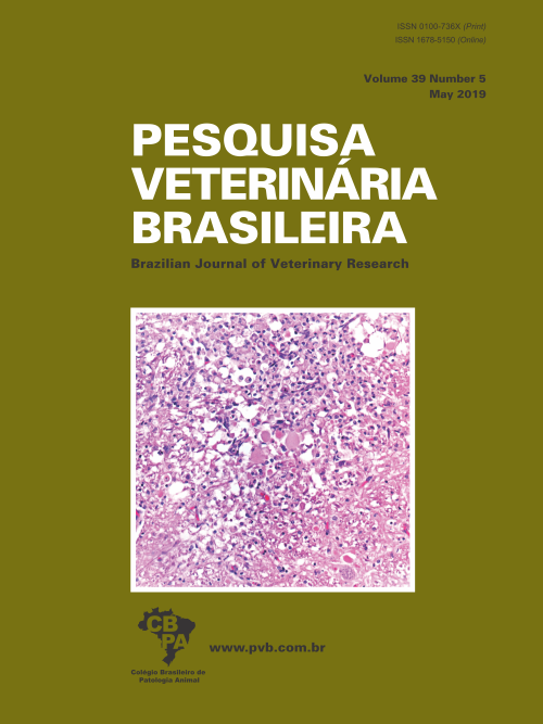 A listeriose é uma doença que afeta várias espécies animais, incluindo o homem, e possui três formas diferentes de apresentação: nervosa, abortiva ou septicêmica. A forma nervosa é causada principalmente pela bactéria Listeria monocytogenes. No Brasil a doença já foi descrita em bovinos, ovinos e caprinos, mas não foram encontrados relatos desta doença em búfalos no Brasil e no mundo. O objetivo deste trabalho foi descrever um surto de listeriose nervosa em búfalos no estado do Pará, Brasil. O surto ocorreu de maio a julho de 2016, em uma propriedade localizada no município de Bujaru, na Amazônia Oriental. Três bubalinos de um total de 47 animais (Casos 1, 2 e 3), menores de 40 dias, apresentaram um quadro clínico neurológico caracterizado por dificuldade de locomoção, paralisia dos quatro membros, diminuição da sensibilidade cutânea, decúbito lateral e morte. A morbidade foi de 6,38% e a letalidade de 100%. Na necropsia não foram encontradas lesões macroscópicas significativas. Amostras do sistema nervoso central foram coletadas e fixadas em formalina tamponada a 10% e processadas rotineiramente para análise histopatológica. As principais alterações microscópicas observadas foram microabscessos unilaterais no tronco encefálico, compostos predominantemente por células mononucleares, com menor número de polimorfonucleares, e manguitos perivasculares compostos predominantemente por células mononucleares e poucos neutrófilos. Amostras dos Casos 1 e 2 revelaram bactérias Gram positivas nas áreas de necrose na técnica de Gram. Amostras do Caso 1 resultaram positivas na imuno‑histoquímica para L. monocytogenes. O diagnóstico da forma nervosa da listeriose foi baseado nos dados epidemiológicos, no quadro clínico patológico e na imunomarcação para Listeria monocytogenes. Os resultados demostram que a listeriose deve ser considerada no diagnóstico diferencial em bubalinos com sinais nervosos.