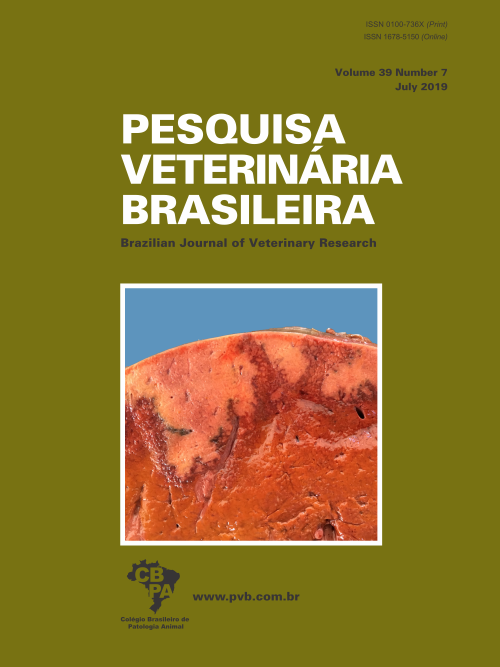 O objetivo deste trabalho é descrever os aspectos epidemiológicos, clínicos e patológicos da intoxicação espontânea por Merremia macrocalyx em bovinos de Pernambuco, nordeste do Brasil e reproduzir experimentalmente a intoxicação por esta planta. Para determinar a ocorrência das intoxicações, foram visitadas 30 propriedades em seis municípios na Zona da Mata de Pernambuco. A planta foi encontrada em nove fazendas onde também haviam históricos de intoxicações em bovinos e ocasionalmente em ovinos. Três surtos de intoxicações espontâneas em bovinos foram estudados e para reproduzir experimentalmente a doença, dois novilhos receberam doses únicas de 60g/kg e dois novilhos receberam 80g/kg de folhas frescas de M. Macrocalyx para consumo espontâneo no cocho. Dois novilhos foram utilizados como grupo controle. Os principais sinais clínicos observados na intoxicação espontânea consistiram em agitação, timpanismo, poliúria, diarreia e morte dentro de 48 a 72 horas após a observação dos primeiros sinais clínicos. Os bovinos intoxicados experimentalmente apresentaram sinais clínicos semelhantes aos observados nos casos espontâneos. À necropsia as lesões consistiam em compactação e ressecamento dos conteúdos do rúmen, omaso e retículo. O conteúdo do abomaso estava fluido, notava-se hiperemia das mucosas, as pregas estavam edemaciadas e continham múltiplas úlceras. Lesões semelhantes também foram observadas na mucosa do duodeno. Histologicamente, as lesões observadas na mucosa do abomaso e do duodeno consistiam em necrose, hemorragia e infiltrado inflamatório neutrofílico e linfocítico. A ampla distribuição de Merremia macrocalyx na região estudada e a boa palatabilidade associada à alta sensibilidade da espécie bovina verificada neste experimento, reforça a importância desta planta em casos espontâneos de intoxicação em bovinos.