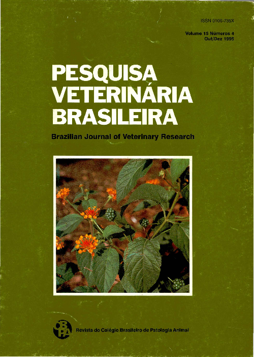 A finalidade deste estudo foi testar a sensibilidade do coelho à Lantana camara var. aculeata procedente de Quatis, Rio de Janeiro, e compará-la com a dos bovinos e ovinos, no intuito de encontrar a melhor metodologia para o trabalho de levantamento da toxidez das diversas lantanas do Brasil. Utilizaram-se 15 coelhos adultos, dos quais dois serviram como controle. Dois coelhos ingeriram voluntariamente um total de 37,5g/kg e 44,44g/kg de peso vivo das folhas frescas e conservadas à temperatura de 4° a 6ºC, durante 5 dias. Os demais coelhos receberam doses de 6, 8, 10, 12 e 15g/kg de peso vivo das folhas dessecadas de L. camara var. aculeata, administradas em um dia, por via intra-gástrica. Os sintomas foram discretos a leves e resumiram-se em apatia, inapetência e anorexia, fezes escassas, ressecadas, em pequenas sílabas e, às vezes, envoltas por muco, icterícia e perda de peso; não observou-se fotossensibilização nos animais. Nenhum animal morreu. A única alteração macroscópica observada em 6 coelhos sacrificados em diversas fases de intoxicação, foi icterícia. As lesões histológicas foram muito suaves e restringiram-se apenas a tumefação dos hepatócitos da periferia dos lóbulos, discreta vacualização na zona intermediária, com raras células hepáticas terminando em lise e discreta apoptose. Diante da baixa sensibilidade do coelho a Lantana, quando comparada a do bovino e ovino, conclui-se que esta espécie animal não se presta para o levantamento proposto.