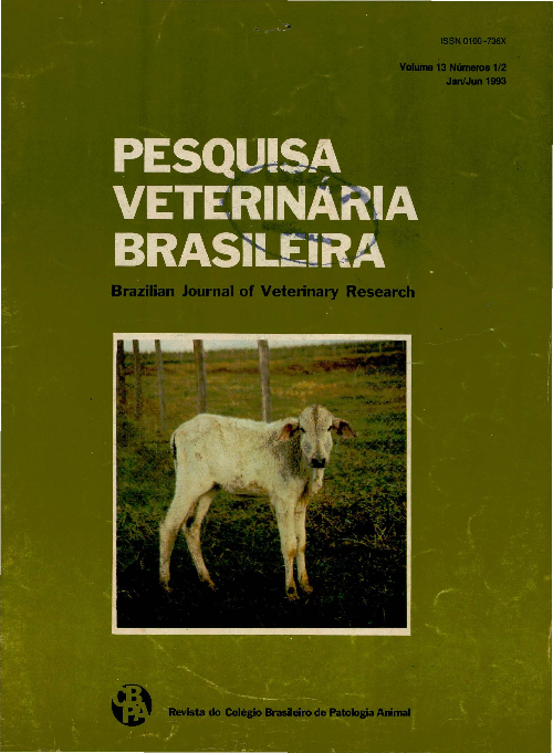 Descreve-se um estudo comparativo das características antigênicas de três amostras de vírus de influenza equina (IE) A/equi 2, isoladas no Brasil em 1969, 1985 e 1987, utilizando-se as provas de inibição de hemoaglutinação (IHA) e soroneutralização (SN) em ovos embrionados. Soros de galos imunizados conforme técnica preconizada pela OMS e soros de pintos que sofreram infecção virai foram empregados. Os resultados dessas provas indicaram existir uma ligeira variação antigênica entre as amostras estudadas. As dilas amostras mais recentes (1985 e 1987) estão estreitamente relacionadas e ambas igualmente distanciadas da amostra de 1969 que por sua vez se apresentou mais próxima da cepa protótipo do vírus - A/equi 2/Miami/l/63. Os resultados das provas de IHA são melhor evidenciados com os soros de pintos, sangrados 21 dias pós infecção, que apresentam títulos inibidores mais elevados. As provas de SN confirmaram os achados obtidos com IHA e como seus resultados são expressos em valores maiores, sua análise e interpretação ficam mais fácil de serem demonstradas. Em ambos os tipos de prova, os resultados obtidos sugerem que uma ligeira variação antigênica da hemaglutinina do vírus A/equi 2 ocorreu entre os anos de 1969 e 1985.