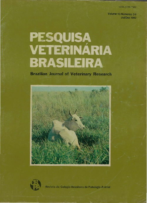 Two trials were performed to recognize copper deficiency in cattle in the coastal region of Rio Grande do Sul. Heifers and steers were injected, at 3 months intervals, with a preparation containing 100mg of copper. In one farm, 6 months after the start of the trial, the weight gains (85.1 kg) of 67 heifers supplemented were significantly higher (p < 0.05) than the weight gains (80.28 kg) of 68 non supplemented heifers. In another farm in a trial with 2 groups of 57 steers cach, there were no significant weight gain differences between the supplemented and the control group 18 months after the start of the trial. These results suggest a marginal copper deficiency in cattle in the area. In the sarne region, 5 outbreaks of sudden deaths were studied. The mean copper concentration in the livers in 11 cattle that died suddenly was 4.2 ppm - dry basis (d.b.), varying from 1.3 to 8.4 ppm - d.b. These low concentrations indicate that the disease may be associated with a copper deficiency. A disease of calves characterized by flacid paralysis or progressive ataxia at birth was also studied. A myelin deficiency in the spinal cord white matter was observed histologically. Affected calves had low copper concentrations in the liver (7.6 ppm - d.b.) and spinal cord (6.9 and 7.4 ppm - d.b.). The similarity of this congenital hypomielinogenesis with other diseases of the nervous system caused by copper deficiency in cattle and sheep and the low copper concentrations in tissues, suggest that the disease is caused by a copper deficiency.