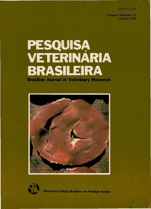 Amostras de sangue foram obtidas ao abate de 60 frangos de corte, de 43 a 56 dias de idade, de cada uma de 60 granjas sem problemas sanitários aparentes localizadas em uma região de alta densidade de produção avícola. As granjas correspondiam a 10% do número total que existe na região e estavam localizadas em um raio de 50 km. Todos os frangos tinham sido vacinados contra a doença de Marek no primeiro dia de vida. Os soros foram avaliados no teste de imunodifusão para anticorpos para reovírus aviário (R V A), vírus da doença infecciosa da bursa (VDIB), vírus da bouba aviária (VBA), vírus herpes de perus (HVT), adenovírus aviário do grupo 1 (AVA-1) e do grupo 2 (A VA-2). Os mesmos soros foram examinados no microteste de soroneutralização em placas para anticorpos para o vírus da bronquite infecciosa (VBI) e o vírus da laringotraqueíte infecciosa (VLTI), bem como anticorpos inibidores da hemoaglutinação para o vírus da doença de Newcastle (VDN). Anticorpos para RVA, detectados em 2172 (63,6%) de 3418 soros, e para AVA-1, em 2701 (78,2%) de 3456 soros, foram demonstrados em todas as 60 granjas, enquanto que, anticorpos para o VDIB, em 3086 (89,4%) de 3452 soros, foram encontrados em somente 57 destas granjas. Estes resultados indicam que os três vírus são ubíquos em frangos de corte da região estudada. Anticorpos para o VBA em 14 (0,5%) de 2935 soros, para o VDN em seis (0,2%) de 3320 soros, foram encontrados em cinco de 59 e em uma de 60 granjas, respectivamente, indicando que esses dois vírus ocorrem apenas raramente. Anticorpos para HVT, em 315 (9,0%) de 3484 soros, foram detectados em 39 de 60 granjas testadas, sugerindo resposta sorológica pobre à vacinação e baixa exposição de campo ao vírus da doença de Marek. Anticorpos para o VBI, em 61 (2,1%) de 2925 soros, foram encontrados em 12 de 57 granjas testadas. Porém, em apenas uma granja a percentagem de reagentes era significativa (41 %); nas outras 11 granjas a percentagem de frangos com anticorpos variava de 1,7 a 16,1%. Finalmente, não foram detectados anticorpos em 3491 soros de 60 granjas testada para A VA-2, nem em 3035 soros de 59 granjas testadas para o VLTI, indicando que esses vírus não existem na área geográficas estudada. O significado de todos os achados é discutido.