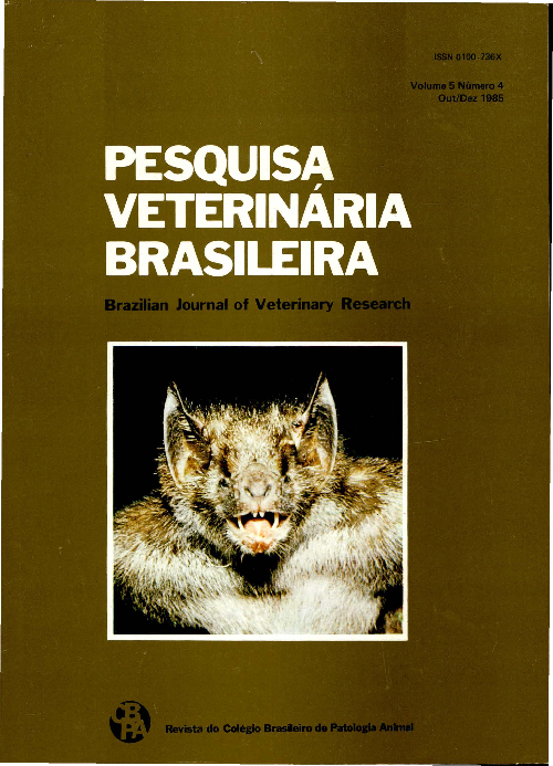 Foi estudada a evolução das lesões do sistema nervoso central causadas por Solanum fastigiatum var. fastigiatum em 7 bovinos. Utilizaram-se doses que variaram de 75 g/kg de peso a l.163 g/kg de peso administradas num período entre 15 e 620 dias. As alterações iniciais caracterizaram-se por vacuolização das células de Purkinje e presença de esferóides axonais localizados na substância branca cerebelar. Posteriormente, ocorreu o desaparecimento de células de Purkinje, sendo substituídas por astroglia. Os esferóides axonais sofreram degeneração walleriana, observando-se, em conseqüência, microcavitações e proliferação de astroglia. Simultaneamente ao processo degenerativo, observou-se acúmulo perivascular constituído principalmente por macrófagos. A reversibilidade das lesões foi estudada em 4 bovinos, dois dos quais receberam 440 g/kg de peso, os outros dois, 350 g/kg de peso. Um dos bovinos que receberam 440 g/kg de peso durante 140 dias e outro que recebeu 350 g/kg durante 107 dias, foram sacrificados após o final da administração da planta, e os outros dois animais foram mantidos sem a planta por 113 e 63 dias, respectivamente, e, posteriormente, sacrificados. Este estudo demonstrou que as lesões do pericário e axônios são lentamente reversíveis, e alguns esferóides, pertencentes provavelmente às células de Purkinje já desaparecidas, sofrem degeneração walleriana. As lesões observadas, bem como sua evolução são similares às descritas nas doenças do armazenamento; o fato de que essas alterações sejam lentamente reversíveis indica a possibilidade de que a enfermidade ocorra em conseqüência de uma inibição enzimática ou da presença de uma substância lentamente hidrolisável contida na planta. Para o estudo da suscetibilidade à intoxicação por Solanum fastigiatum var. fastigiatum, foram utilizados 3 ovinos que receberam 430 g/kg de peso, num período de 202 a 370 dias, e 6 coelhos, 6 cobaias e 8 ratos, que receberam planta a 10% misturada em ração comercial durante 120 dias. Das espécies utilizadas, somente os ovinos foram sensíveis à intoxicação por esta planta, mostrando lesões similares às observadas em bovinos.