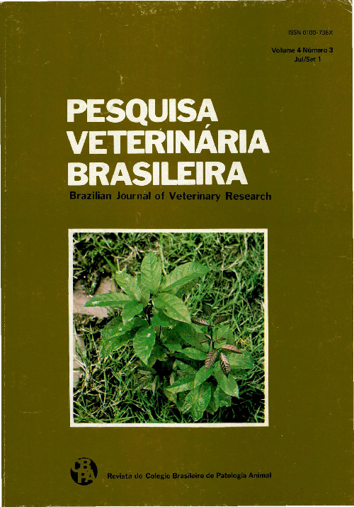 As folhas dessecadas e pulverizadas de Arrabidaea bilabiata (Sprague) Sandw. (fam. Bignoniaceae), planta tóxica para bovinos, foram administradas por via intragástrica em quantidades que variaram de 0,5 a 6 g/kg, a 57 coelhos. Desses, 26 morreram. Houve grande variação na dose que causava o aparecimento de sintomas e a morte dos animais. A dose menor que causou a morte dos coelhos foi 1 g/kg;·a maior que não matou coelhos foi 6 g/kg. Nenhum dos 3 coelhos que receberam 0,5 g/kg morreu. De 8 coelhos que receberam 1 g/kg, 2 morreram; de 16 coelhos que receberam 2 g/kg, 8 morreram; de 12 coelhos que receberam 4 g/kg, 4 morreram; e de 16 coelhos que receberam 6 g/kg, 10 morreram. O início dos sintomas variou de 2h22' a 12h07' após o início da administração da planta. A evolução da intoxicação variou de meio a 4 minutos; em um coelho foi de 1 7 minutos. Os sintomas de intoxicação foram os da síndrome de "morte súbita": repentinamente o coelho fazia movimentos desordenados, violentos, debatia-se ou pulava; outras vezes só fazia subitamente movimentos desordenados lentos e em seguida caía, em geral, em decúbito lateral. Outros simplesmente caíam; também em decúbito lateral. A respiração tornava-se difícil, espaçada e o animal morria. Desde o início do aparecimento dos sintomas até a morte, a maioria dos coelhos emitia gritos, com maior ou menor freqüência. Os achados de necropsia foram praticamente negativos. Os exames histopatológicos revelaram alterações no fígado, rim e coração, consistindo principalmente em alterações degenerativas e vasculares. No fígado foram observadas necrose, vacuolização do citoplasma e degeneração albuminosa-granular dos hepatócitos, congestão, dissociação dos cordões hepáticos, atrofia compressiva desses, presença de esférulas eosinofílicas nos sinusóides e edema dos espaços de Disse; no rim, degeneração hidrópico-vacuolar das células epiteliais dos túmulos contorna dos distais e·tumefação das células epiteliais dos túbulos contornados na junção Cortico-medular: no coração edema intracelular das fibras cardíacas, afastamento entre estas e presença de focos de eosinofilia aumentada do músculo cardíaco.