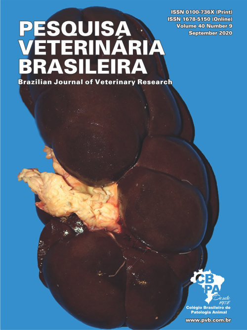 Cobre é um micromineral essencial, que quando em excesso induz necrose hepática, crise hemolítica, nefrose hemoglobínurica e morte em bovinos. As intoxicações, apesar de incomuns nessa espécie, ocorrem devido a suplementação exacerbada de cobre, pela deficiência de microminerais antagonistas ou secundária a lesão hepática prévia. Relata-se um surto de intoxicação crônica por cobre em bovinos semiconfinados após suplementação com 50mg/kg de cobre em matéria seca. Os bovinos manifestaram sinais clínicos caracterizados por anorexia, incoordenação motora, perda de equilíbrio, icterícia, urina acastanhada ou negra, diarreia e morte ou foram encontrados mortos, após 10 a 302 dias do início de consumo. De 35 bovinos que morreram 20 foram submetidos à necropsia sendo achada frequente icterícia, fígado aumentado e com padrão lobular evidente, rins pretos e bexiga urinária repleta de conteúdo acastanhado a enegrecida. Microscopicamente, no fígado havia degeneração vacuolar e ou necrose coagulativa hepatocelular zonal, centrolobular ou paracentral, além de degeneração vacuolar com corpúsculos de Councilman, colestase, fibrose periascinar leve, e inflamação de discreta a moderada. Nos rins havia degeneração e necrose do epitélio tubular assim como cilindros de hemoglobina intratubulares. Os níveis de cobre no fígado e rim foram de 5.901,24 a 28.373,14µmol/kg e 303,72 a 14.021µmol/kg respectivamente. A suplementação nutricional excessiva com cobre pode causar doença hemolítica com icterícia, hemoglobinúria e morte de bovinos mantidos em sistema de semiconfinamento.